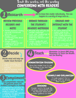 Readers & writers should receive the expectations for requesting a conference and participating in a conference within a minilesson. It's important to take this time to discuss the expectations as well as model for young learners what a conference looks and sounds like.